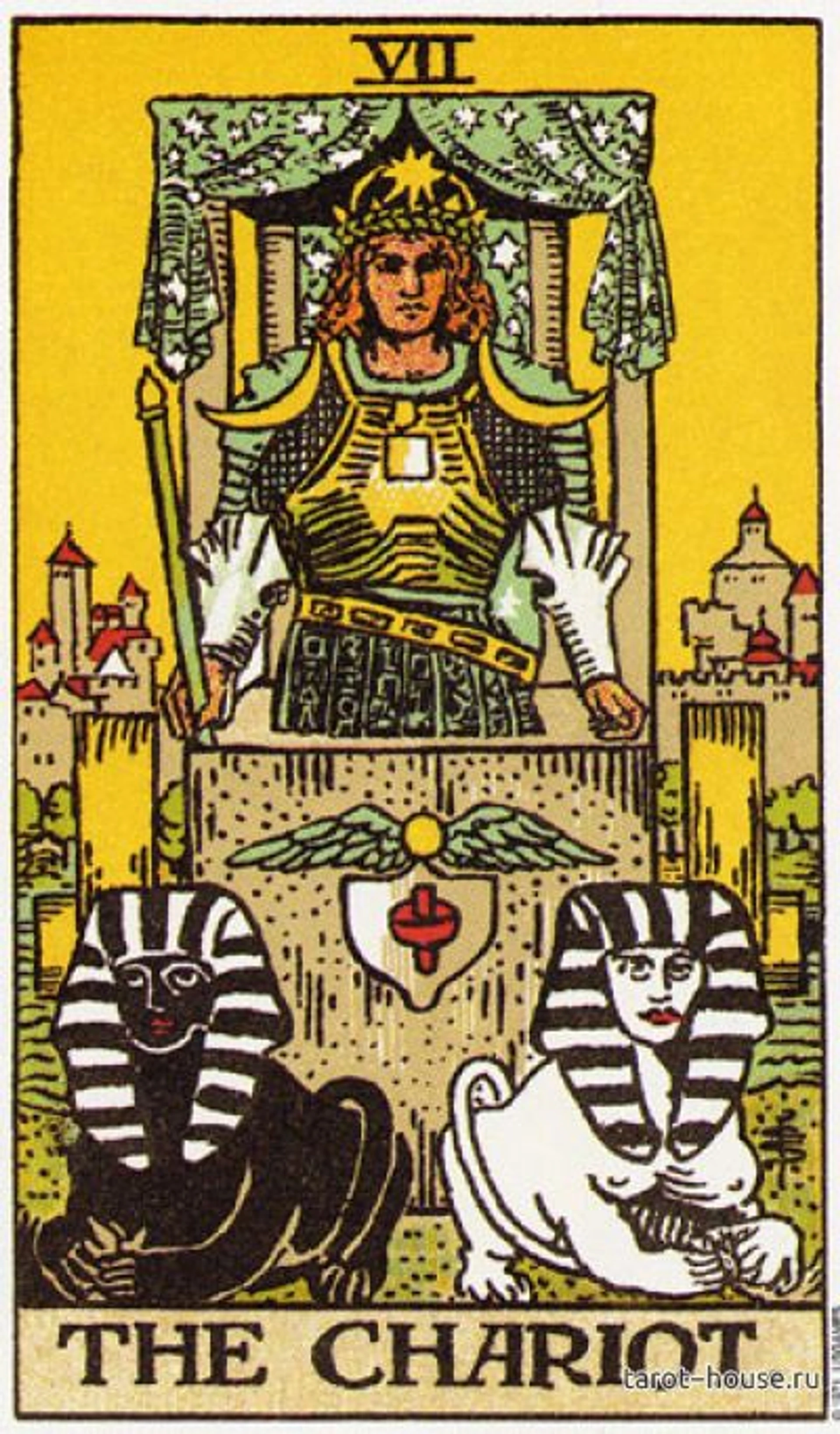 The Seventh Arcanum, The Chariot, is a symbol of spiritual strength, a will to win, and the ability to master one's own life.
