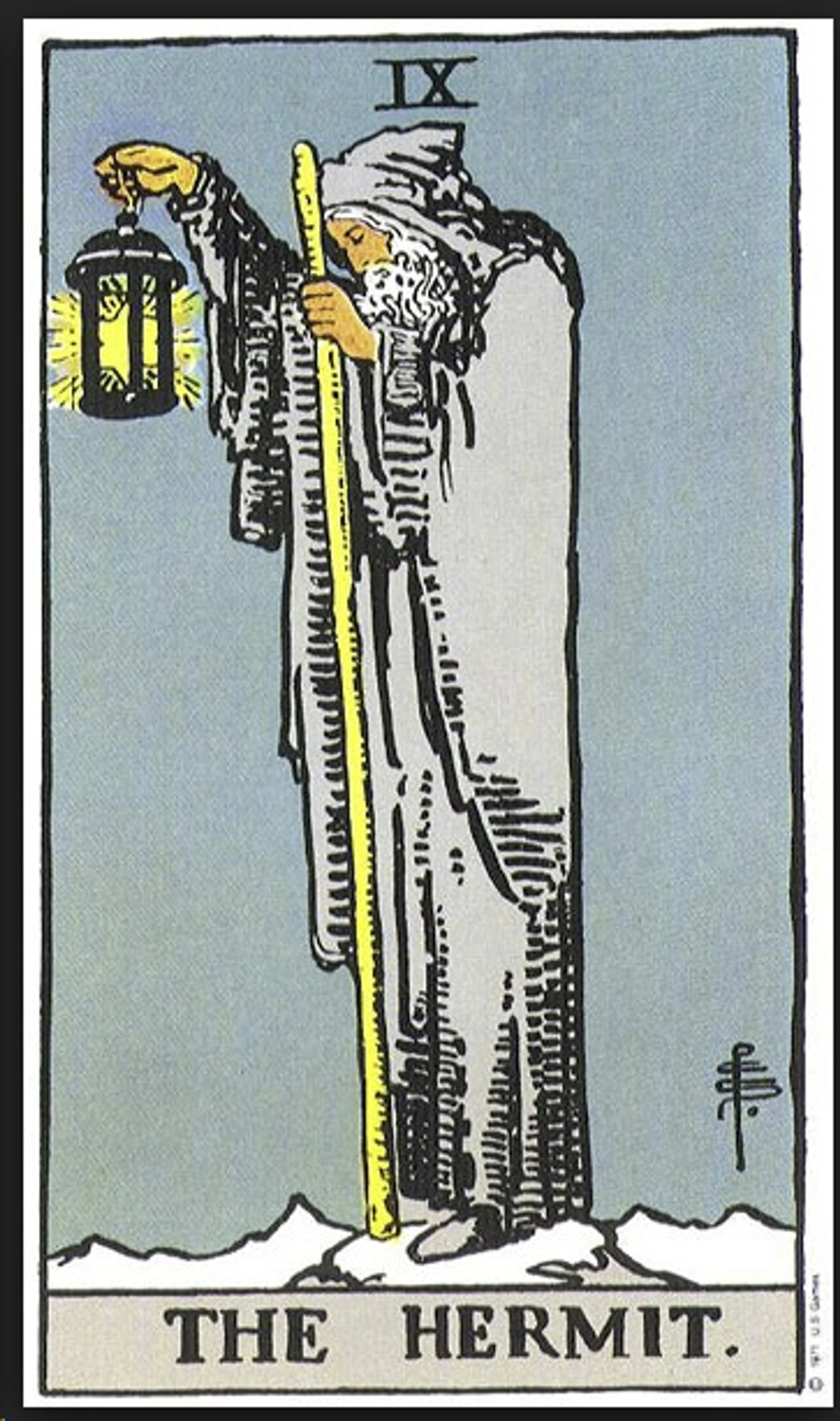 Where the Hierophant emphasizes received wisdom (passed down through generations) and an awareness of one's place in a particular tradition or lineage, the Hermit embodies a more personal quest. It's a journey deep within oneself. The lantern he carries is your inner light, the instinct and desire for knowledge that will lead you to the answers you seek.